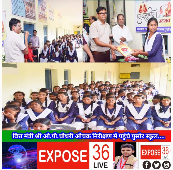 वित्त मंत्री श्री ओ.पी.चौधरी औचक निरीक्षण में पहुंचे पुसौर स्कूल….