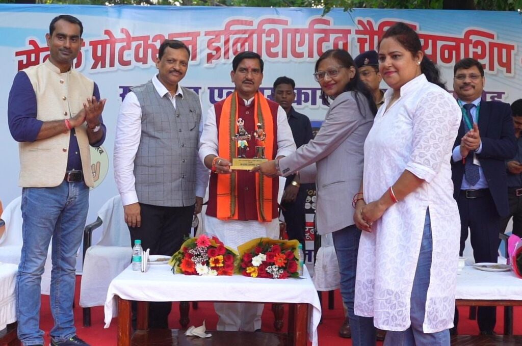 सेल्फ प्रोटेक्शन इलिसिएटिव चैंपियनशिप 2024 के समापन सम्मान कार्यकर्म रायपुर पुलिस लेन में आयोजित हुआ जिसमे मुख्य अतिथि केंद्रीय मंत्री तोखन साहू रहे वही कार्यकर्म की अध्यक्षता पुरंदर मिश्रा विधायक , विशिष्ट अथिति मयंक श्रीवास्तव आयुक्त जनसंपर्क विभाग, संतोष सिंह एसएसपी रायपुर , सुनील रामदास अग्रवाल प्रमुख सलाहकार हेल्पिंग हैंड्स क्लब फाउंडेशन रहे। इसी कर्म में सभी चैंपियन विजेताओं को पुरुष्कार वितरण किया गया। एवं साथ ही साथ समाज सेवा में हमेशा अग्रणी रह कर हर वर्ग विभाग में अपनी अहम भूमिका निभाने के लिए समाज सेवा में उत्तीर्ण कार्य के लिए प्रदेश के सामाजिक संस्था हेल्पिंग हैंड्स क्लब फाउंडेशन का सम्मान किया गया। इस अवसर पर हेल्पिंग हैंड्स क्लब फाउंडेशन के प्रमुख सलाहकार सुनील रामदास अग्रवाल , रायपुर टीम से सुजाता अग्रवाल , पूजा छाबरा उपस्थित रहे। वही हेल्पिंग हैंड्स क्लब फाउंडेशन के संरक्षक बंटी सोनी, संरक्षक मनोज गोयल ,प्रदेश अध्यक्ष अंकित अग्रवाल,महिला प्रदेश अध्यक्ष बबिता अग्रवाल , उदित अग्रवाल , रजत अग्रवाल , विवेक श्रीवास्तव, रिंकू केडिया , तरुण अग्रवाल, ज्योति अग्रवाल, अनुराधा अग्रवाल,विन्नी सलूजा,विकास शारदा, अविचल अग्रवाल , लोकेश गर्ग , श्रुति श्रीवास्तव, सुनीता पांडे, एकता मलिक ,गार्गी पांडे,राकेश जैन, विवेक सान्याल , लिलेश जैन , अल्पना शर्मा ,सेजल अग्रवाल, राहुल डनसेना, रजत शर्मा , निलेश अग्रवाल , अंबर अग्रवाल , श्रेणिक बोथरा , सुधीर अग्रवाल , साहिल शर्मा , डॉ विकास अग्रवाल , काजल अग्रवाल ,नवीन जलान, मयंक जैन, पायल जैन , आयुश्वनी चौबे , सुमित अग्रवाल सभी ने रायपुर पुलिस , जनसंपर्क छत्तीसगढ़ एवं प्रेस क्लब रायपुर का आभार व्यक्त किया।