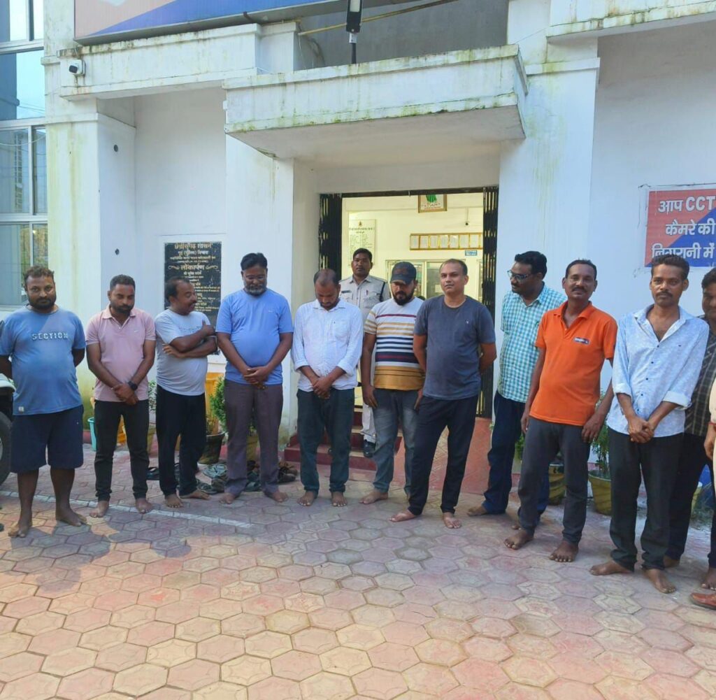 आज शाम टाउन पेट्रोलिंग के दौरान पुलिस को मुखबिर से सूचना मिली थी कि पंचधारी डेम के किनारे कुछ लोग ताश के पत्तों से जुआ खेल रहे हैं। सूचना की गंभीरता को समझते हुए थाना प्रभारी निरीक्षक सुखनंदन पटेल ने तत्काल कार्रवाई का निर्णय लिया। पुलिस टीम ने मौके पर पहुंचकर घेराबंदी की और सभी 11 आरोपियों को गिरफ्तार कर लिया।