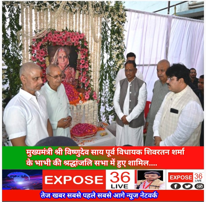 मुख्यमंत्री श्री विष्णुदेव साय पूर्व विधायक शिवरतन शर्मा के भाभी की श्रद्धांजलि सभा में हुए शामिल….