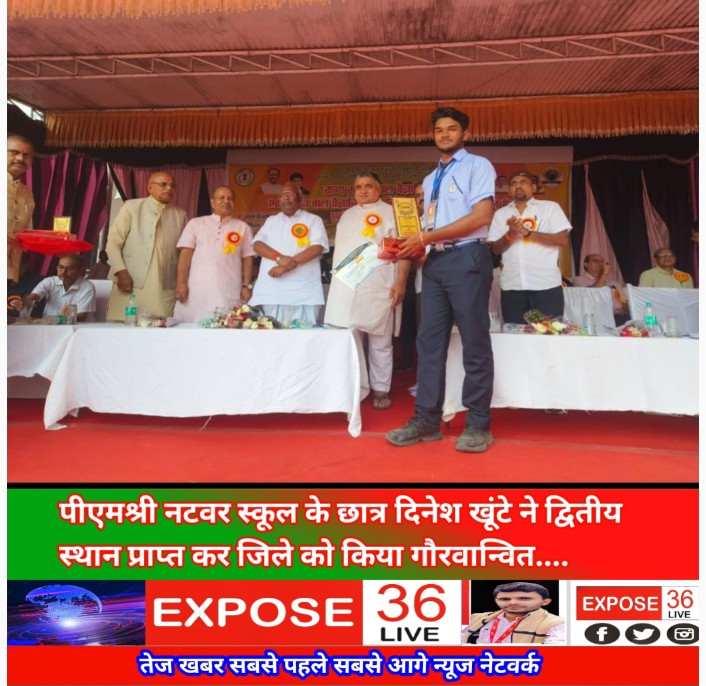 पीएमश्री नटवर स्कूल के छात्र दिनेश खूंटे ने द्वितीय स्थान प्राप्त कर जिले को किया गौरवान्वित….