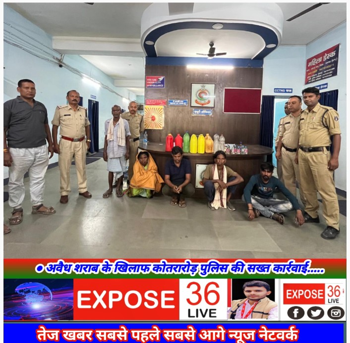 *11 नवंबर, रायगढ़* । कोतरारोड थाना क्षेत्र में अवैध शराब की बिक्री पर प्रभावी कार्रवाई के उद्देश्य से पुलिस अधीक्षक श्री दिव्यांग कुमार पटेल के दिशा निर्देशन एवं एडिशनल एसपी श्री आकाश मरकाम के मार्गदर्शन पर कोतरारोड थाना प्रभारी निरीक्षक त्रिनाथ त्रिपाठी ने आज सुबह थाने की विशेष टीम गठित की। पुलिस टीम ने ग्राम खैरपुर, छिंदटिकरा, धनागर, कुर्मापाली, गोदामडिपा और कलमी गांव में शराब रेड अभियान चलाया।टीम ने पुलिस बल और स्थानीय ग्रामीणों के सहयोग से संदेहियों के घरों में दबिश दी और अवैध शराब के साथ पांच आरोपियों को गिरफ्तार किया।