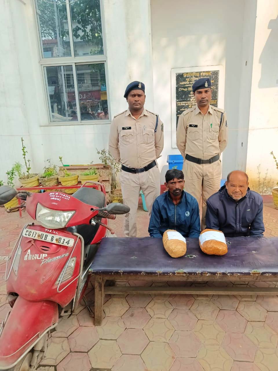 दोनों आरोपी- (1) अजमत खान पिता युनुस खान उम्र 40 वर्ष निवासी राजापारा रायगढ़ (2) रविशंकर देवांगन पिता स्व गंगाजय देवांगन उम्र 49 वर्ष निवासी पैलेस रोड कोष्टापारा रायगढ़ के कब्जे से 2 किलो गांजा (कीमत ₹20,000), स्कूटी CG 13 UB 6834 (कीमत ₹10,000), और एक मोबाइल फोन (कीमत ₹1,000) जब्त किया गया। कोतवाली थाने में आरोपियों पर धारा 20(B), 29 एनडीपीएस एक्ट के तहत मामला दर्ज किया गया। इस कार्रवाई में एसआई ऐनु देवांगन, आरक्षक हेलारियुस तिर्की, मुरली मनोहर पटेल, और अजय साय शामिल थे।