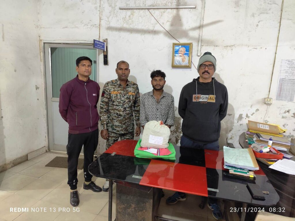 थाना जूटमिल प्रभारी निरीक्षक मोहन भारद्वाज के नेतृत्व में पुलिस ने छातामुडा बाईपास चौक के पास संदिग्ध अजय यादव को पकड़ा। युवक के पास से कपड़े के थैले में 2 किलो गांजा (कीमत ₹24,000) बरामद हुआ। पुलिस ने गांजा को विधिवत जब्त कर आरोपी के खिलाफ मामला दर्ज किया। इस कार्रवाई में निरीक्षक मोहन भारद्वाज, एएसआई राजेंद्र सिंह पटेल, नरेंद्र सिदार, और आरक्षक तरुण महिलाने, सुशील यादव, जितेश चौहान और कामता चौहान शामिल थे। आरोपी पर एनडीपीएस एक्ट के तहत कार्यवाही की गई है।