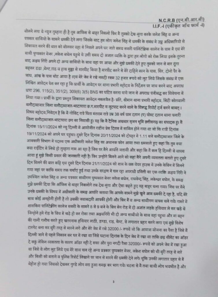 रायपुर/बलौदाबाजार – आज प्रदेश के कोने-कोने में पत्रकारों पर हमला किया जा रहा है, यह पत्रकारिता के क्षेत्र में बढ़ती चुनौतियों और सुरक्षा के मुद्दों को उजागर करता है। ऐसी घटनाएं अक्सर प्रेस की स्वतंत्रता और अभिव्यक्ति की आज़ादी पर सवाल खड़े करती हैं। पत्रकारों पर हमले का मुख्य कारण अक्सर उनके द्वारा उजागर की गई सच्चाई या किसी विवादास्पद मुद्दे पर उनकी रिपोर्टिंग होती है। इस बार पत्रकार गोविंद रात्रे को शराब माफियाओं ने अपना शिकार बनाया, जाँच के नाम पर कार्यवाही में विलंब से दर्ज हुई FIR, आख़िर ज़िम्मेदार कौन?
