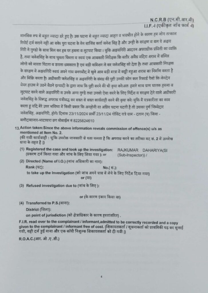 पत्रकार गोविंद रात्रे ने अपने शिकायत में यह भी बताया है कि आबकारी निरक्षक के संरक्षण में अक्षय गिरी स्वयं अपने गांव बनगबौद में खुले आम बड़ी मात्रा में कच्ची महुआ शराब का निर्माण करता है और बिक्रि करता है। उन्होंने पुलिस-प्रशासन से आग्रह किया है कि प्राण घातक हमला व लुटपाट करने वाले अक्षयगिरी व उनके अन्य गुण्डे तथा उनको ऐसा करने के लिए निर्देश व संरक्षण देने वाले अधीकारी जलेश सिंह के विरूद्ध अपराध पंजीबद्ध कर सख्त से सख्त कार्यवाही करें।