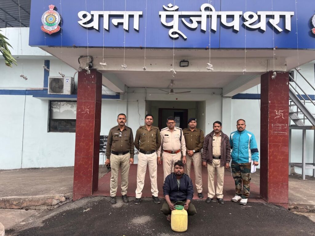 *30 नवबंर, रायगढ़* । थाना प्रभारी पूंजीपथरा निरीक्षक राकेश मिश्रा के नेतृत्व में पूंजीपथरा पुलिस क्षेत्र में अवैध गतिविधियों पर नकेल कसने के लिए पुलिस नियमित गश्त और कार्रवाई कर रही है। कल थाना पूंजीपथरा पुलिस ने मुखबिर की सूचना पर कार्रवाई करते हुए एक सब्जी दुकान में चल रहे अवैध शराब बिक्री के कारोबार का भंडाफोड़ किया है। सहायक उप निरीक्षक जयराम सिदार, विजय एक्का और हमराह स्टाफ द्वारा यह शराब रेड कार्रवाई की गई।