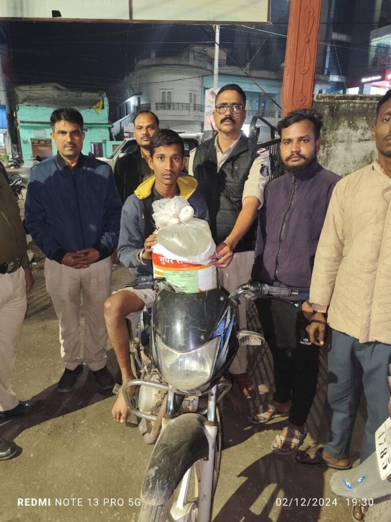 *03 दिसंबर, रायगढ़* । रायगढ़ पुलिस के अवैध शराब के खिलाफ चलाए जा रहे अभियान में जूटमिल पुलस ने बड़ी सफलता हासिल की है। पुलिस अधीक्षक श्री दिव्यांग कुमार पटेल के निर्देशन पर जूटमिल थाना प्रभारी निरीक्षक मोहन भारद्वाज के नेतृत्व में सोमवार को 20 लीटर अवैध महुआ शराब के साथ एक युवक को गिरफ्तार किया गया। शराब की तस्करी में इस्तेमाल की जा रही मोटरसाइकिल भी जब्त कर ली गई है।