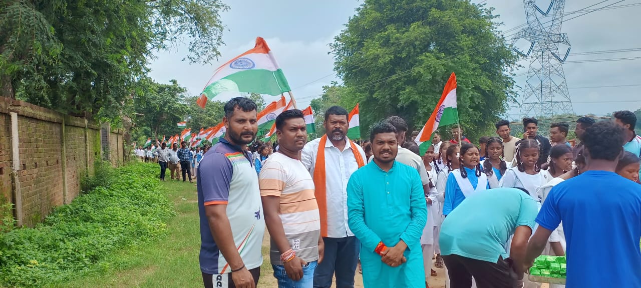 इसी क्रम आज धरमजयगढ क्षेत्र के बाकारूमा में शा.उ.माध्यमिक विद्यालय, शासकीय माध्यमिक विद्यालय बाकारूमा के छात्र छात्र-छात्राओं समस्त शिक्षकगणों के साथ हर घर तिरंगा रैली निकाली गई। और वहीं पुरे जोश भरे स्वर में देशभक्ति गीत एवं नारे लगाते हुए,पुरे बाकारूमा बस्ती में रैली भ्रमण किया गया।