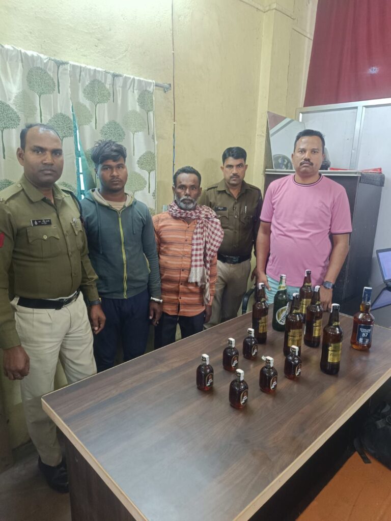 *जूटमिल थाना क्षेत्र में* निरीक्षक मोहन भारद्वाज की टीम ने ग्राम बड़माल के रेंगालपाली चेक पोस्ट पर चेकिंग अभियान के दौरान एक मोटरसाइकिल सवार दो व्यक्तियों को पकड़ लिया। आरोपी जगन्नाथ प्रधान (25) निवासी ग्राम लारा थाना पुसौर और आरोपी दिनबंधु परिडा (54),निवासी थाना ओडगांव, जिला नयागढ़ ओड़िसा हॉल ग्राम लारा के निवासी हैं। आरोपियों के बैग से 01 अंग्रेजी शराब की बोतल और 06 पाव उड़ीसा राज्य की सीलबंद शराब और 06 नग बीयर की बोतल मिला, कुल शराब मात्रा 5.730 वल्क लीटर किमती 3070/रु. एवं उक्त शराब को परिवहन के उपयोग मे लाई जाने वाली मोटर सायकल हीरो एच.एफ. डिलक्स रंग ग्रे ब्लैक कमांक ओडी-25-एल-8841 को गवाहो के समक्ष जप्ती किया गया ।