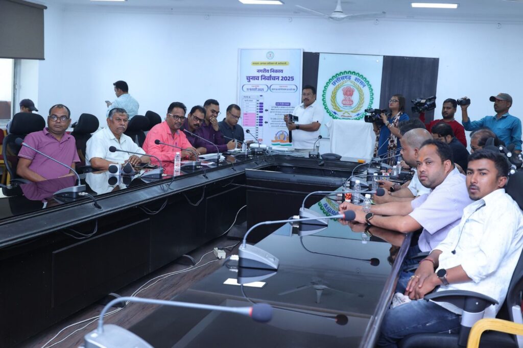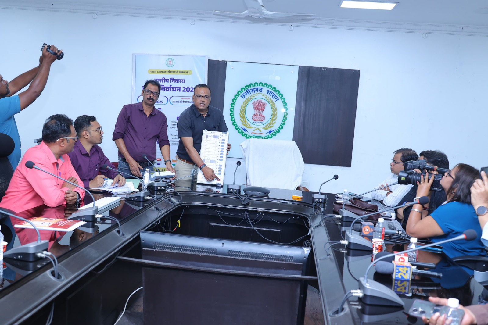 रायगढ़, 3 फरवरी 2025/ कलेक्टर एवं जिला निर्वाचन अधिकारी श्री कार्तिकेया गोयल के निर्देशन में नगरीय निकाय निर्वाचन-2025 के तहत आज कलेक्टोरेट सभाकक्ष में मीडिया प्रतिनिधियों के लिए ईवीएम डेमो प्रदर्शन का आयोजन किया गया। इस अवसर पर संयुक्त कलेक्टर श्री राकेश कुमार गोलछा, डिप्टी कलेक्टर एवं नोडल अधिकारी निर्वाचन श्री समीर बड़ा उपस्थित रहे।