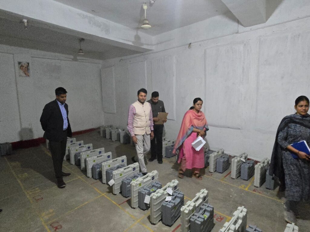 रायगढ़, 8 फरवरी 2025/ कलेक्टर श्री कार्तिकेया गोयल ने पुलिस अधीक्षक श्री दिव्यांग पटेल और सीईओ जिला पंचायत श्री जितेन्द्र यादव के साथ खरसिया के नगरीय निकाय और पंचायत निर्वाचन की तैयारियों का जायजा लिया। कलेक्टर श्री गोयल ने अधिकारियों के साथ स्ट्रांग रूम का निरीक्षण किया। यहां उन्होंने नगरीय निकाय निर्वाचन के लिए कमीशंड ईवीएम मशीनों का अवलोकन किया। इसके साथ ही स्ट्रांग रूम में बैरिकेडिंग, सुरक्षा व्यवस्था और सीसीटीवी का भी जायजा लिया।
