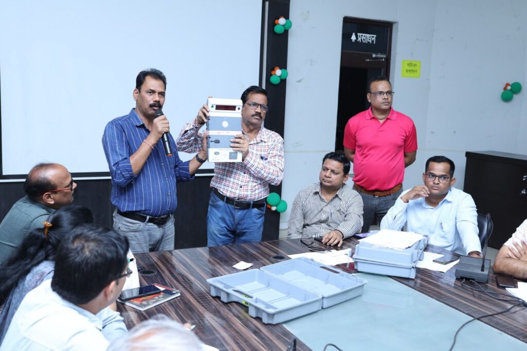 रायगढ़, 14 फरवरी 2025/ नगरीय निकाय निर्वाचन-2025 के तहत 15 फरवरी को होने वाले मतगणना को लेकर कलेक्टर एवं जिला निर्वाचन अधिकारी श्री कार्तिकेया गोयल के निर्देशन में आज कलेक्टोरेट के सृजन सभाकक्ष में पूर्वाभ्यास कराया गया। इस अवसर पर अपर कलेक्टर एवं उप जिला निर्वाचन अधिकारी श्री रवि राही, आयुक्त नगर निगम श्री बृजेश सिंह छत्रिय, एसडीएम रायगढ़ श्री प्रवीण तिवारी, डिप्टी कलेक्टर श्रीमती रेखा चन्द्रा, डिप्टी कलेक्टर एवं नोडल अधिकारी निर्वाचन श्री समीर बड़ा, उपायुक्त श्री सुतीक्षण यादव उपस्थित थे।