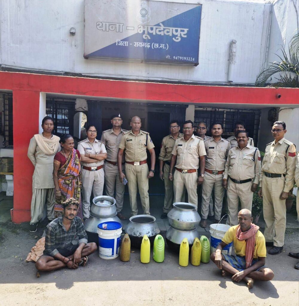 *28 फरवरी, रायगढ़*। कल भूपदेवपुर पुलिस और आबकारी विभाग की संयुक्त टीम ने ग्राम गुढकुर्री और बिलासपुर में अवैध शराब निर्माण और बिक्री के खिलाफ सख्त कार्रवाई करते हुए चार आरोपियों को गिरफ्तार किया है। पुलिस ने छापेमारी के दौरान बड़ी मात्रा में महुआ शराब और अंग्रेजी शराब जब्त की।