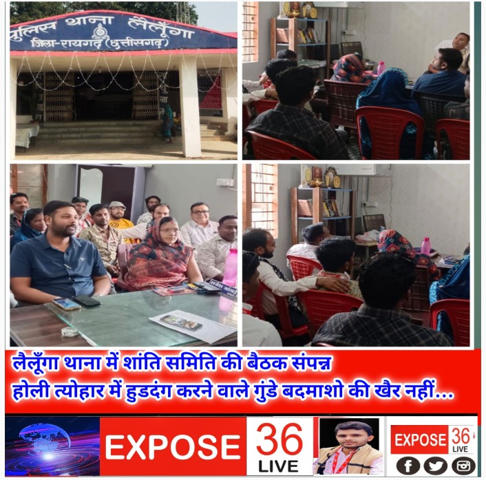 लैलूँगा/ लैलूँगा में होली पर्व को शांतिपूर्ण और सौहार्दपूर्ण वातावरण में संपन्न कराने के लिए पुलिस प्रशासन पूरी तरह सतर्क है। पुलिस अधीक्षक दिव्यांग कुमार पटेल के निर्देशन में जिले के लैलूँगा थानों में शांति समिति की बैठक आयोजित की गई, जिसमें विभिन्न समाजों के गणमान्य नागरिकों, जनप्रतिनिधियों और प्रशासनिक अधिकारियों ने भाग लिया। बैठक में थाना प्रभारी राजेश जांगड़े ने कानून-व्यवस्था बनाए रखने के लिए सख्त दिशा-निर्देश दिए। और नागरिकों से सहयोग की अपील की।