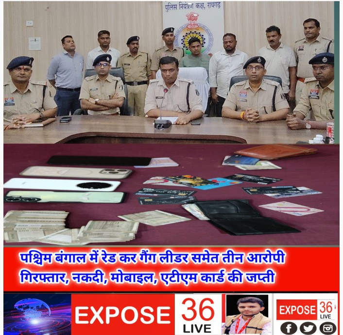 ● *पश्चिम बंगाल में रेड कर गैंग लीडर समेत तीन आरोपी गिरफ्तार, नकदी, मोबाइल, एटीएम कार्ड की जप्ती*