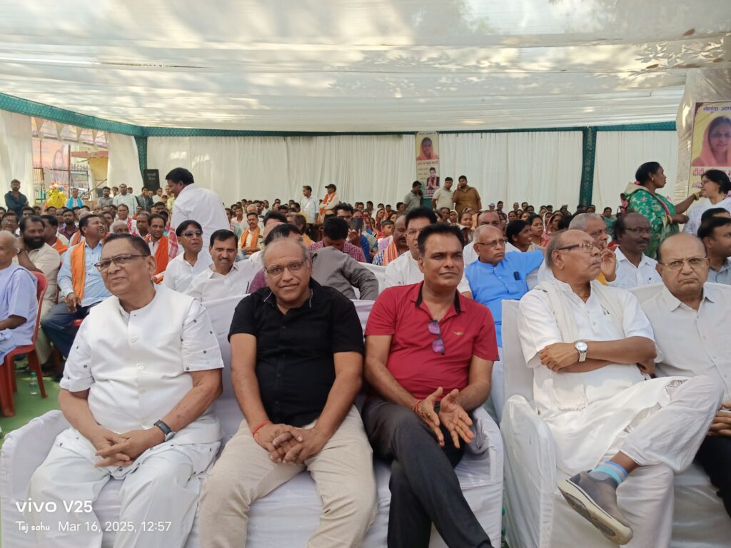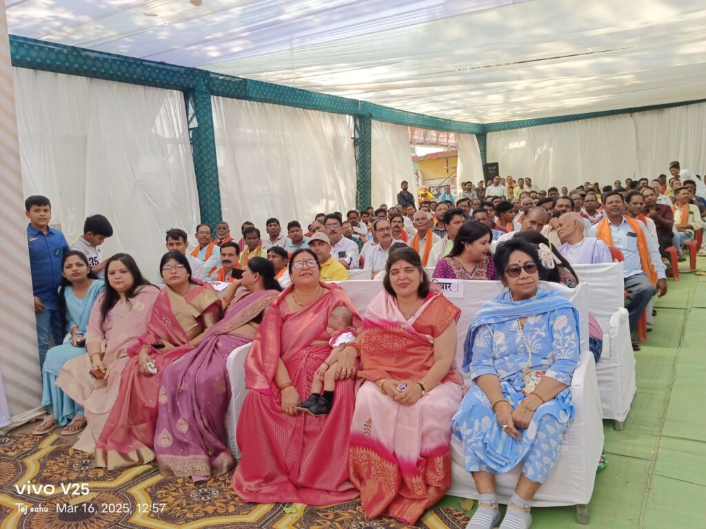 शपथ ग्रहण समारोह के दौरान उपस्थित जनसमूह ने नव निर्वाचित पदाधिकारियों को बधाई देते हुए क्षेत्र के विकास में सहयोग का संकल्प लिया।