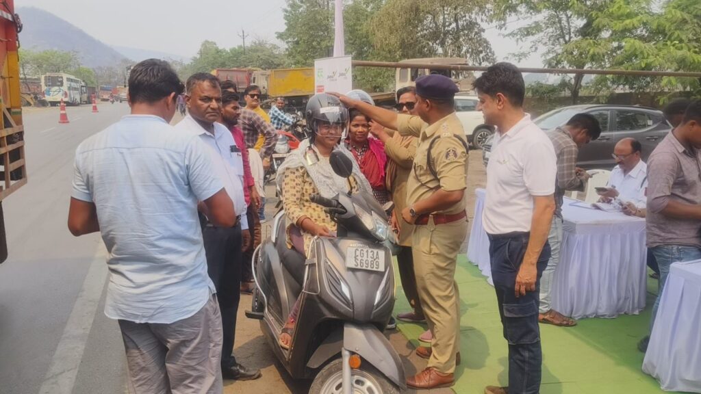 *रायगढ़, 20 मार्च* । जिले में सड़क सुरक्षा को सख्ती से लागू करने और यातायात नियमों के प्रति जागरूकता बढ़ाने के उद्देश्य से रायगढ़ पुलिस ने विशेष अभियान चलाया, जिसके तहत बिना हेलमेट दोपहिया वाहन चालकों पर कार्रवाई करते हुए उन्हें हेलमेट वितरित किए गए। इस मुहिम के तहत जिंदल बेरियर पर यातायात पुलिस ने करीब 100 वाहन चालकों पर मोटर व्हीकल एक्ट के तहत चालान किया और उन्हें निशुल्क हेलमेट उपलब्ध कराए।