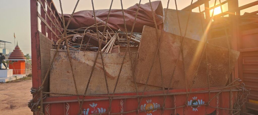 ● *तीन ट्रक, एक आईचर वाहन और ढाबा पीछे रखा करीब 12 लाख रूपये का 41.5 टन अवैध कबाड़ की जप्ती*