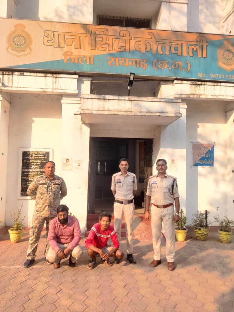 *29 मार्च, रायगढ़* । एसपी श्री दिव्यांग कुमार पटेल के निर्देशन में कोतवाली पुलिस ने कंस्ट्रक्शन कंपनी को 35 लाख रुपये की चपत लगाने वाले दो फरार आरोपियों को गिरफ्तार कर रिमांड पर भेज दिया है। लंबित अपराधों में फरार आरोपियों की तलाश और गिरफ्तारी के लिए सभी थाना और चौकी में कार्रवाई जारी है।