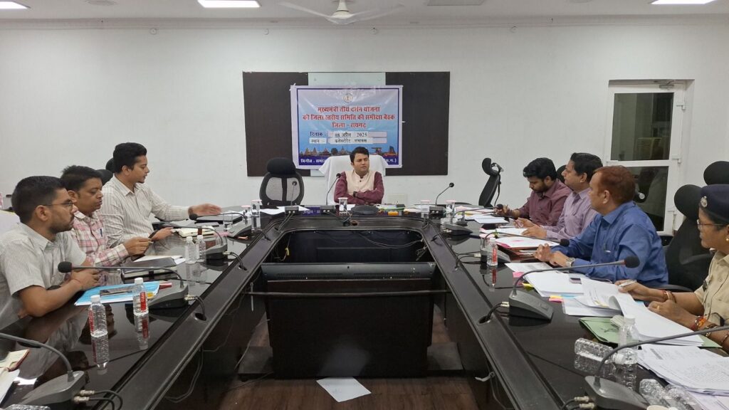 रायगढ़, 9 अप्रैल 2025/ कलेक्टर श्री कार्तिकेया गोयल कलेक्टोरेट सभा कक्ष में मुख्यमंत्री तीर्थ दर्शन योजना के जिला स्तर समिति की बैठक। योजना के तहत जिले के चयनित हितग्राहियों को 17 से 20 अप्रैल तक मथुरा, कृष्ण जन्मभूमि एवं वृंदावन तीर्थ स्थलों का भ्रमण कराया जाएगा। बैठक में अपर कलेक्टर श्री रवि राही, अपर कलेक्टर श्री अपूर्व प्रियेश टोप्पो, एसडीएम रायगढ़ श्री प्रवीण तिवारी सहित विभागीय अधिकारी उपस्थित रहे।