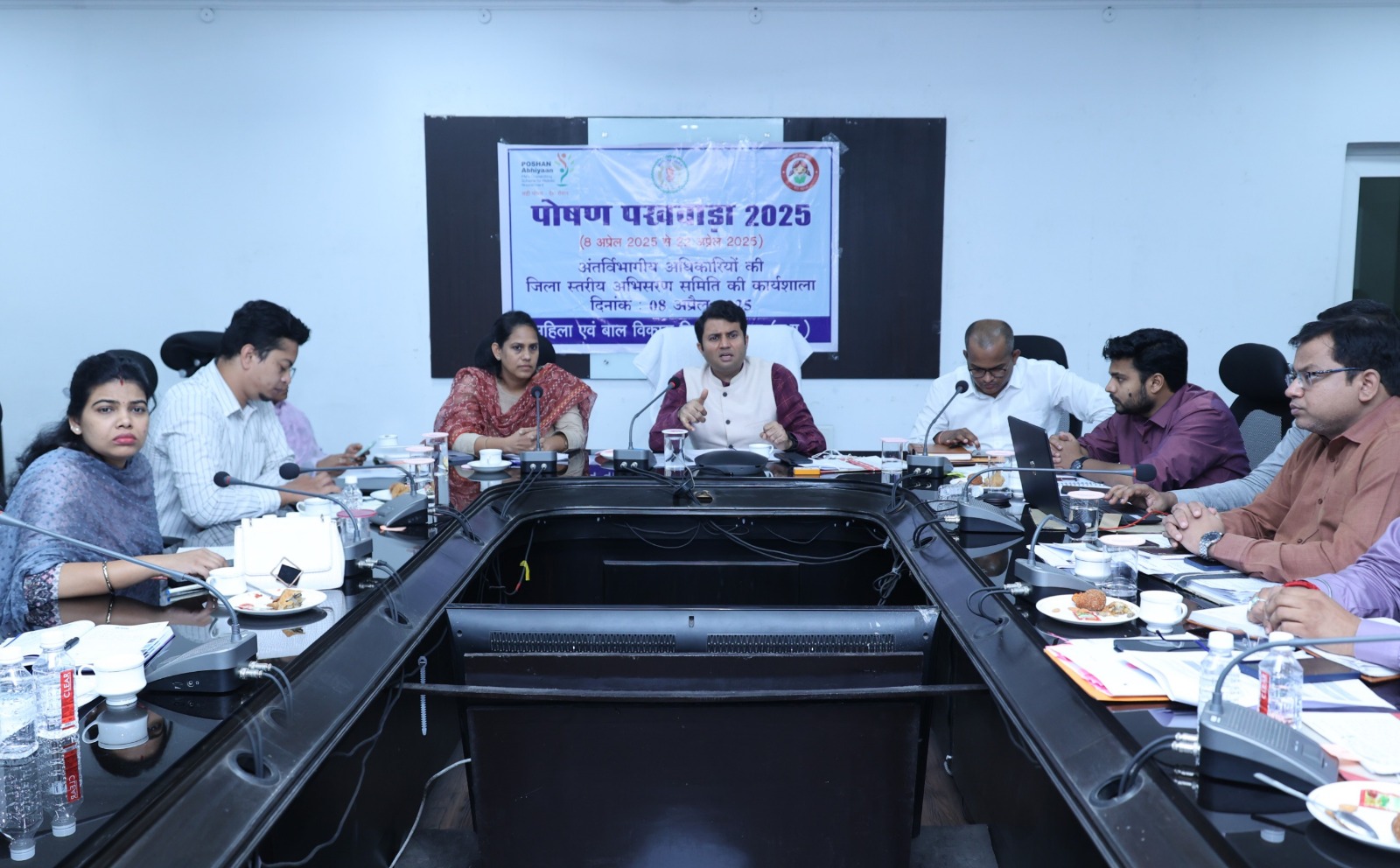 रायगढ़, 9 अप्रैल 2025/ कलेक्टर श्री कार्तिकेया गोयल ने पोषण अभियान अंतर्गत 22 अप्रैल तक चलने वाले पोषण पखवाड़ा 2025 के आयोजन के संबंध में अंतर्विभागीय अधिकारियों की जिला स्तरीय अभिसरण समिति की बैठक ली। बैठक में एडीएम सुश्री संतन देवी जांगड़े, डीएफओ रायगढ़ सुश्री स्टायलो मण्डावी, अपर कलेक्टर श्री रवि राही, अपर कलेक्टर श्री अपूर्व प्रियेश टोप्पो, आयुक्त नगर निगम श्री बृजेश सिंह क्षत्रिय, संयुक्त कलेक्टर श्री राकेश कुमार गोलछा सहित विभागीय अधिकारी उपस्थित रहे।