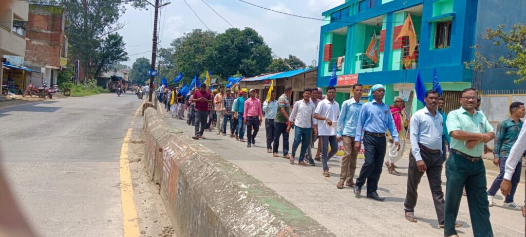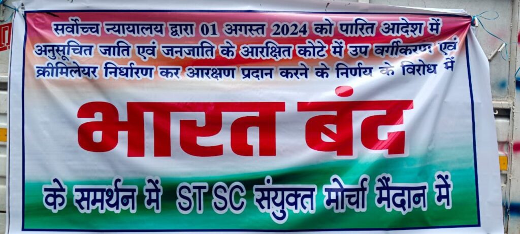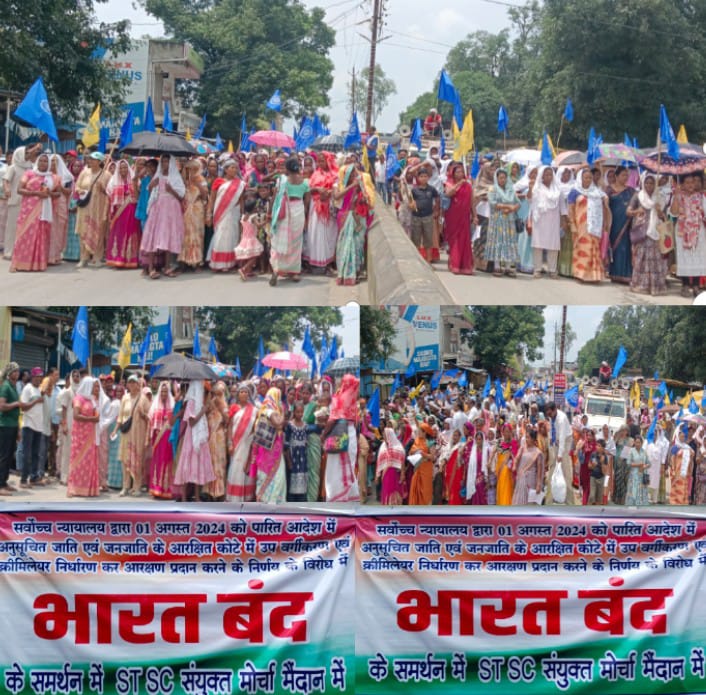 लैलूंगा/लैलूंगा सर्व आदिवासी समाज अधिकारी फेडरेशन संघ ने रैली के साथ भारी संख्या में लैलूंगा क्षेत्र से बड़ी संख्या में आक्रोश रैली में लोग बुधवारी बाजार में एकत्रित हुए हैं महारैली के रूप में निकालने की तैयारी, की गई है ।बड़ी संख्या में जिसमे पूर्व विधायक ह्रदय राम राठिया और सरपंच संघ के अध्यक्ष महेंद्र सिंह सिदार की अगुवाई में रैली प्रारंभ किया गया है। जिसमे लैलूंगा थाना प्रभारी राजेश जांगड़े सहित पुलिस बल मौजूद, है।ताकि लॉ एंड आर्डर बना रहे पेट्रोल पंप,मेडिकल दुकान, दूध की दुकान समेत आवश्यक जरूरत के समान दुकान खुली हुई सुप्रीम कोर्ट के आदेश के विरोध में किया जा रहा ST/SC वर्ग द्वारा भारत बंद।