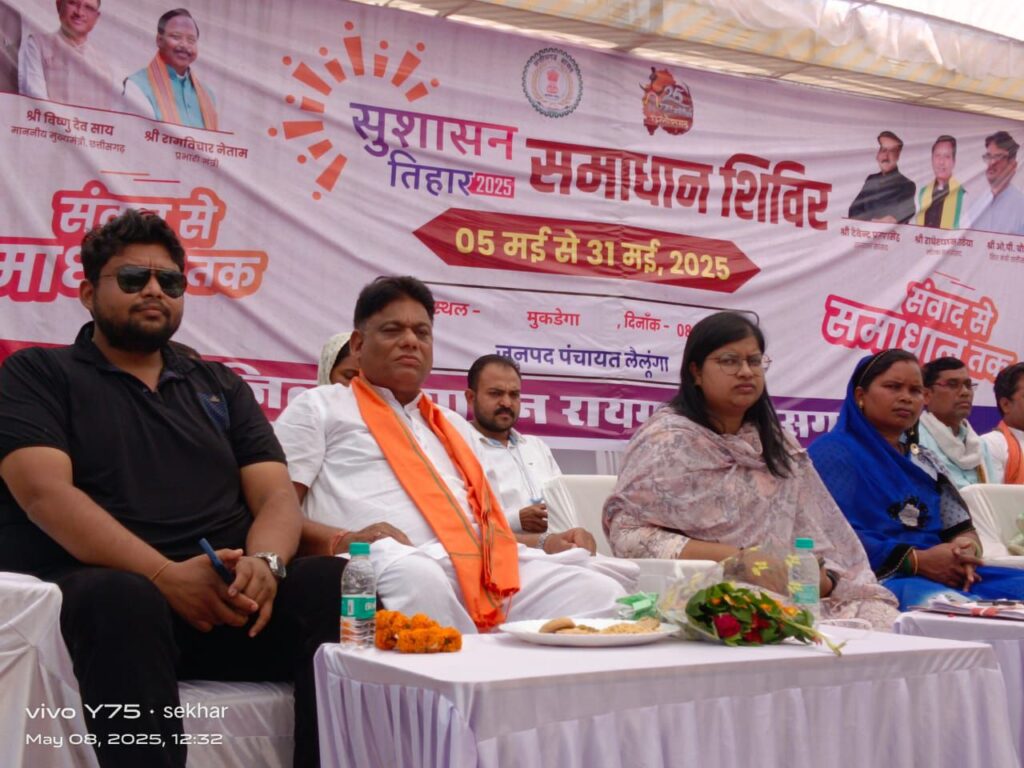लैलूंगा, मुकडेगा — लैलूंगा विकासखंड के तहसील मुकडेगा में आयोजित सुशासन त्यौहार का आयोजन बड़े हर्षोल्लास के साथ किया गया, जिसमें क्षेत्रीय जनप्रतिनिधियों और विभिन्न विभागों के अधिकारियों की गरिमामयी उपस्थिति रही। इस कार्यक्रम में जिला पंचायत उपाध्यक्ष दीपक सिदार मुख्य अतिथि के रूप में उपस्थित रहे।