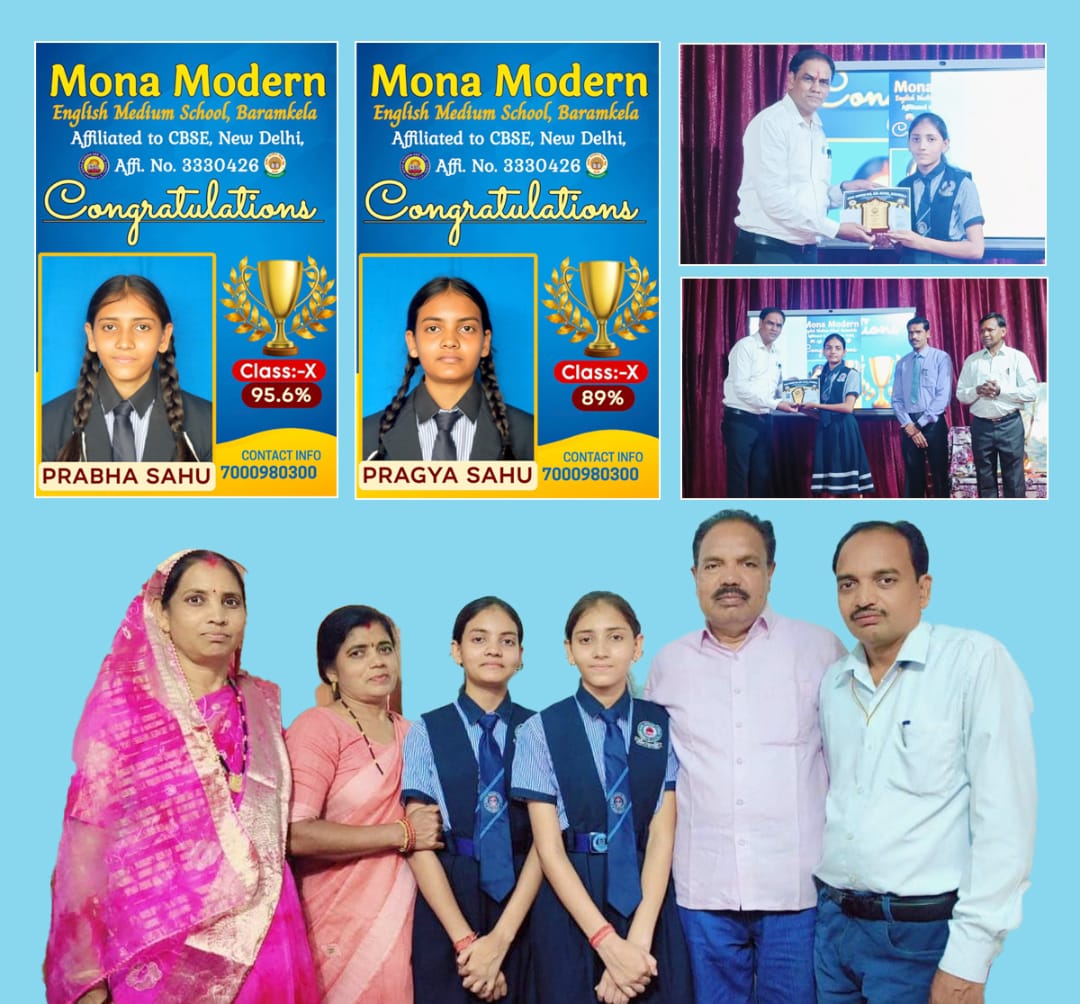 बरमकेला:-सारंगढ़ बिलाईगढ़ जिले के विकासखंड बरमकेला अंतर्गत आने वाले ग्राम चांटीपाली के शिक्षक सुरेंद्र साहू की बिटिया कु. प्रभा साहू को 10th CBSE बोर्ड मोना स्कूल बरमकेला में 95.6% अंक प्रात कर सारंगढ़ बिलाईगढ़ जिले में द्वितीय स्थान व स्कूल में प्रथम स्थान प्राप्त करने पर एवं कु प्रज्ञा साहू का छठवां स्थान प्राप्त करने पर हार्दिक बधाई एवं उनके परिवार वालो ने बधाई एवं शुभकामनाएं प्रेषित किया है l आपको बता दे की प्रभा एवं प्रज्ञा साहू रोहित कुमार साहू के छोटे भाई सुरेंद साहू प्राचार्य के बेटी हैं l सुरेंद्र कुमार साहू जो की वर्तमान में शासकीय उच्च माध्यमिक विद्यालय गोबरसिंहा में प्राचार्य है। साहू जी के दोनों बिटिया ने कक्षा दसवीं में उत्कृष्ट प्रदर्शन और सफलता के लिए उनके परिवार से दादा- दादी, बड़े पापा- बड़े मम्मी, मम्मी- पापा एवं पूरे परिवार सहित सामाजिक पदाधिकारियों ने बधाई देते हुए उज्ज्वल भविष्य की शुभकामनाएं दी और कहा की दोनो के उत्तम प्रदर्शन लक्ष्य की प्राप्ति में मील का पत्थर साबित होगा l उनके परिश्रम,माता पिता पूर्वजों का एवं अध्ययन अध्यापन कराने वालों तथा वातावण उपलब्ध कराने वालों को शुभकामनाएं l सबका आशीर्वाद सदैव बना रहे l सफलता किसी एक बिंदु पर केंद्रित नहीं होता है सबकी अपनी अपनी भूमिका होती है लेकिन सफलता खुद के परिश्रम और विश्वास पर टीका होता है l पुनः बधाईयां l बड़े पापा रोहित कुमार साहू l