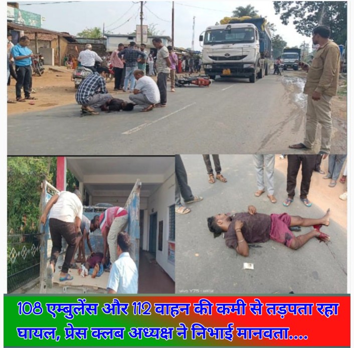 *घटना : मौत से जूझता रहा युवक, सिस्टम देखता रहा तमाशा :* बुलड़ेगा (जशपुर) निवासी नीलाम्बर शुक्रवार को लैलूंगा में एक तेज रफ्तार हाइवा की चपेट में आ गया। टक्कर इतनी जबरदस्त थी कि युवक बुरी तरह घायल हो गया। मौके पर मौजूद लोग घबरा गए – फौरन 108 एम्बुलेंस को कॉल किया गया। जवाब? “वाहन उपलब्ध नहीं है!”
