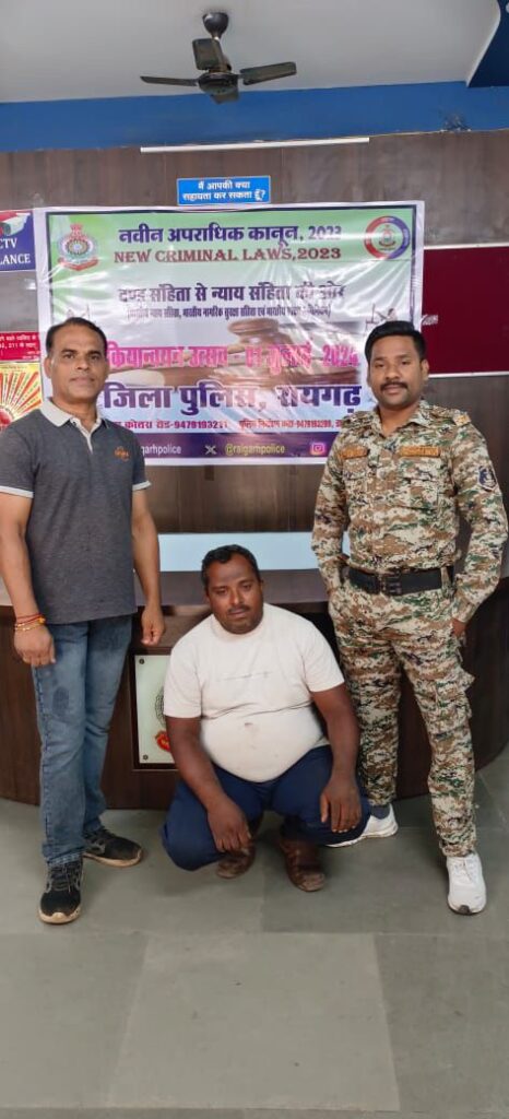 *25 अगस्त, रायगढ़*। आज कोतरारोड़ पुलिस ने धोखाधड़ी मामले के फरार आरोपी मालिक राम पटेल निवासी जोरापाली को उसके गांव से गिरफ्तार कर लिया। आरोपी पिछले 3 साल से गिरफ्तारी से बचने के लिए लुक छिपा रहा था।