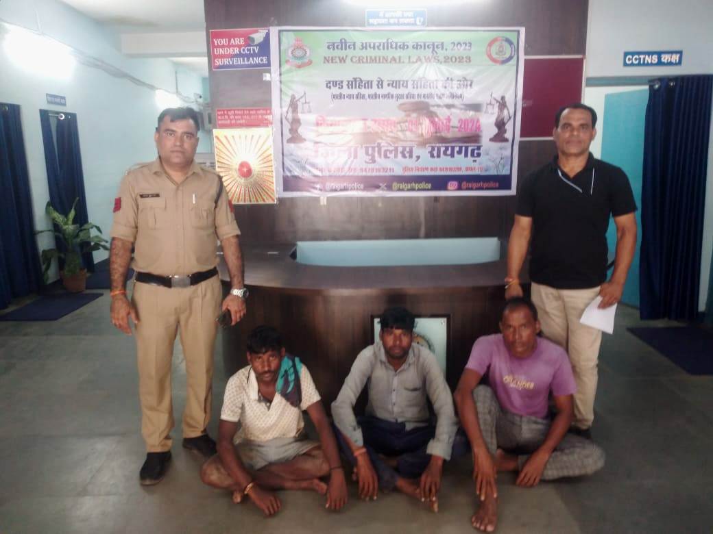 *रायगढ़, 27 अगस्त 2024* । आज कोतरारोड़ पुलिस ने फरार वारंटियों की सूचना लेकर चोरी के संगीन मामले में तीन फरार वारंटियों को गिरफ्तार कर न्यायालय में पेश किया है। आरोपी गेंद लाल बघेल (35), सरजू सिदार (35), और अनिल यादव (27) को उनके गांव लिटाईपाली से हिरासत में लिया गया। इन आरोपियों के खिलाफ थाना कोतरारोड़ में अपराध क्रमांक 273/2022 धारा 457, 380, 34 आईपीसी के तहत केस दर्ज था, वे न्यायालय के समन पर न्यायालय में उपस्थित नहीं हो रहे थे। न्यायिक मजिस्ट्रेट प्रथम श्रेणी, रायगढ़ द्वारा जारी गिरफ्तारी वारंट के परिपालन में कोतरारोड़ पुलिस द्वारा यह कार्रवाई की गई। थाना प्रभारी कोतरारोड़ निरीक्षक त्रिनाथ त्रिपाठी के निर्देशन में सहायक उप निरीक्षक कुसुम केवर्त, प्रधान आरक्षक करुणेश राय और आरक्षक चंद्रेश पांडेय ने यह सफल रेड कार्रवाई को अंजाम देकर वारंटियों के गांव जाकर दबिश में उन्हें पकड़ा ।