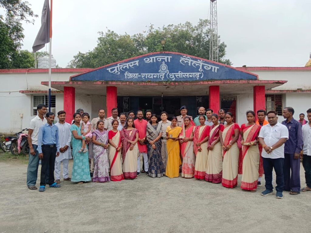 लैलूंगा — भाई-बहन के अटूट प्रेम और रक्षा के संकल्प के इस पावन पर्व पर लैलूंगा थाने का नजारा आज बेहद खास रहा। जिला पंचायत उपाध्यक्ष दीपक सिदार के नेतृत्व में बड़ी संख्या में महिलाएं थाना परिसर पहुँचीं और थाना प्रभारी सहित पूरे पुलिस स्टाफ को अपने हाथों से राखी बांधकर उनका मुंह मीठा कराया।