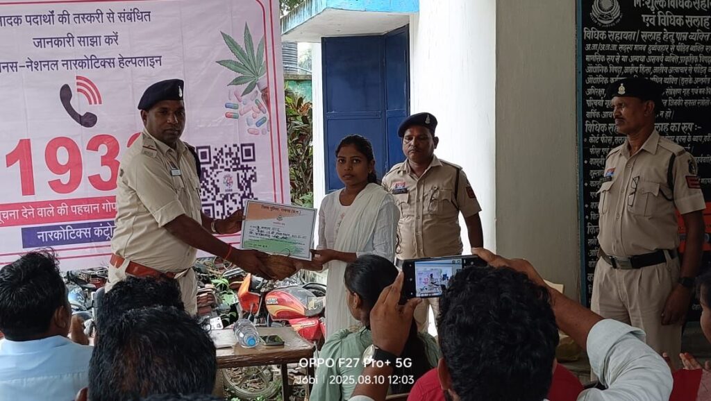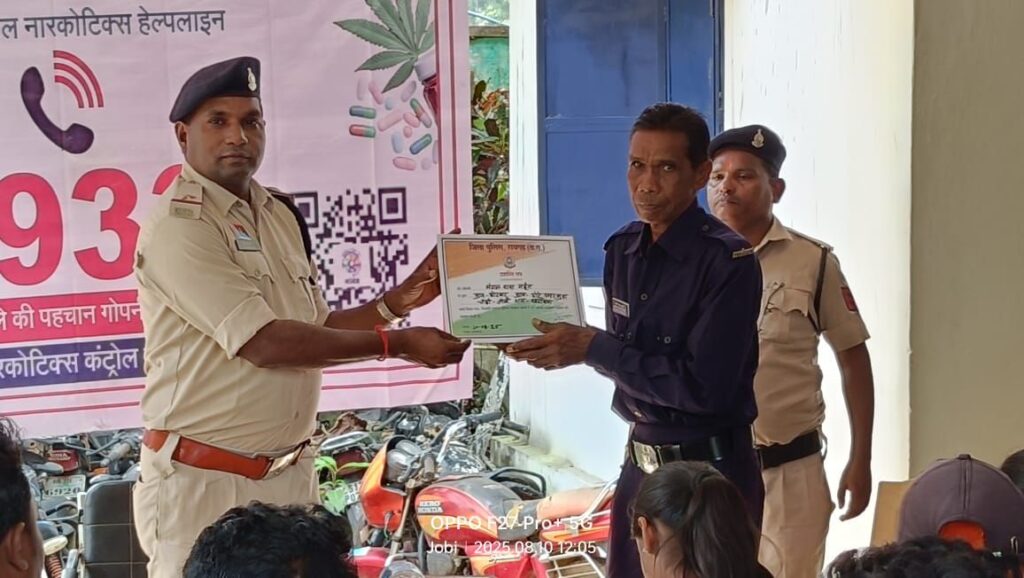 *10 अगस्त 2025, रायगढ़*- पुलिस अधीक्षक श्री दिव्यांग पटेल के दिशा-निर्देशन में 10 अगस्त 2025 को थाना कापू एवं पुलिस चौकी जोबी में कोटवार मीटिंग आयोजित की गई जिसमें कोटवारों को उनके दायित्वों का उचित निवर्हन के संबंध में निर्देश दिया गया । चौकी जोबी में साथ ही एक विशेष कार्यक्रम आयोजित कर चौकी प्रभारी, सहायक उप निरीक्षक लक्ष्मी राठौर ने क्षेत्र के मेधावी छात्राओं, शिक्षकों और कोटवार को उनके प्रेरणादायक कार्यों के लिए प्रशस्ति पत्र प्रदान कर सम्मानित किया। इस अवसर पर चौकी प्रभारी ने कहा कि शिक्षा, सामाजिक सेवा और कानून-व्यवस्था में सहयोग करने वाले लोग समाज के लिए प्रेरणा हैं और पुलिस ऐसे व्यक्तियों का उत्साहवर्धन करती है।