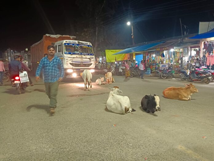 लैलूंगा में चौक-चौराहों पर गाय-बैल का डेरा, दिन-रात जाम से त्रस्त जनता…
