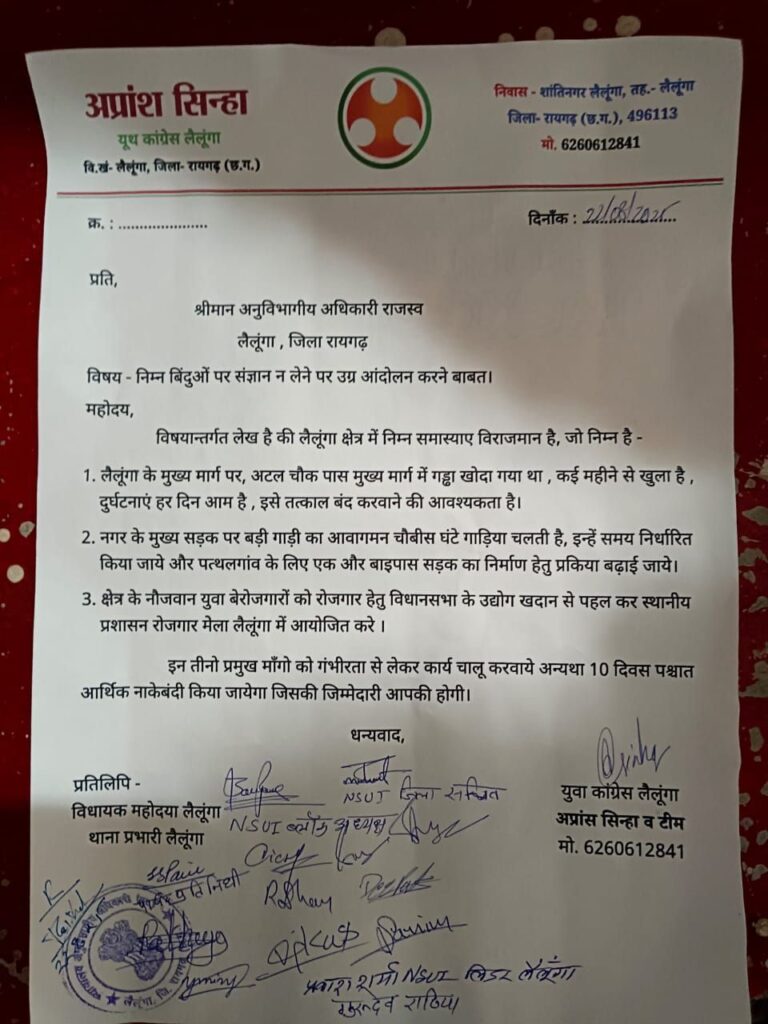 नागरिकों और संगठनों ने साफ शब्दों में चेतावनी दी है कि इन तीनों प्रमुख मांगों पर यदि 10 दिनों के भीतर ठोस कदम नहीं उठाए गए, तो जनता को मजबूरन उग्र आंदोलन करना पड़ेगा। आंदोलन की पहली कड़ी आर्थिक नाकेबंदी होगी। लोगों का कहना है कि अब चुप बैठना संभव नहीं है और यदि प्रशासन ने गंभीरता से नहीं लिया तो लैलूंगा क्षेत्र से उभरने वाली ये लहर जिले और प्रदेश तक गूंजेगी।