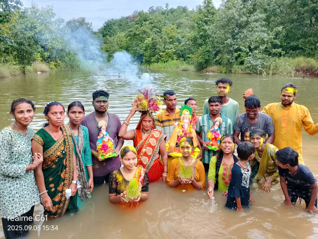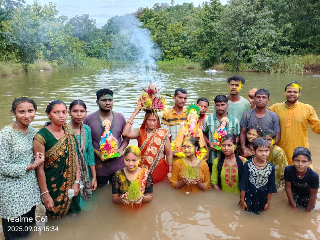 लैलूंगा के अंगेकेला गांव में धूमधाम से गणेश विसर्जन, सेवा भारती स्कूल के बच्चे और शिक्षक भी बने सहभागी…