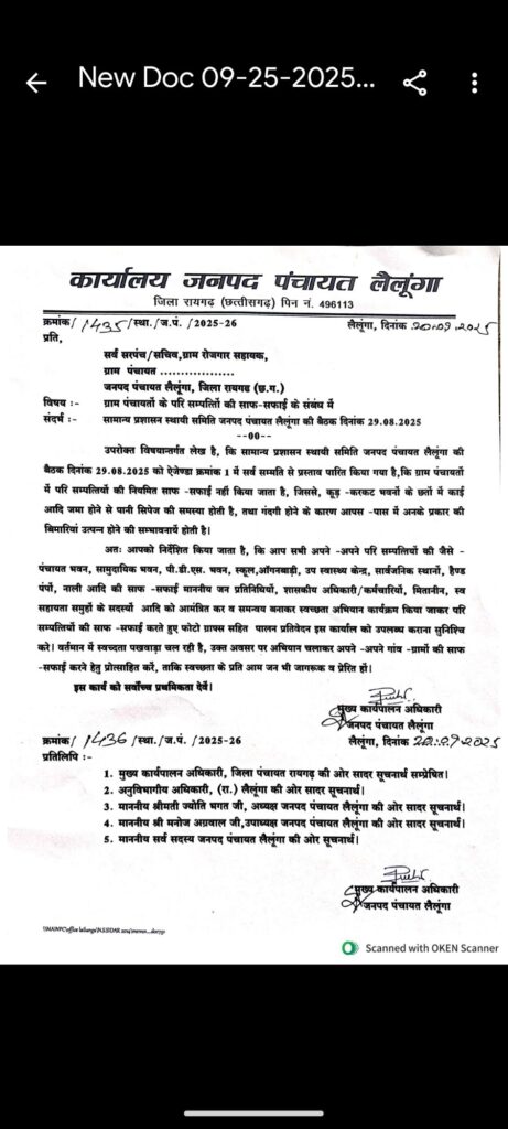 कुल मिलाकर, जनपद पंचायत लैलूंगा का यह निर्देश पंचायतों के लिए अलार्म बेल है। अब देखना होगा कि गांव-गांव में कितनी तेजी से सफाई अभियान धरातल पर उतरता है या फिर यह आदेश भी कागजों तक ही सीमित रह जाता है।