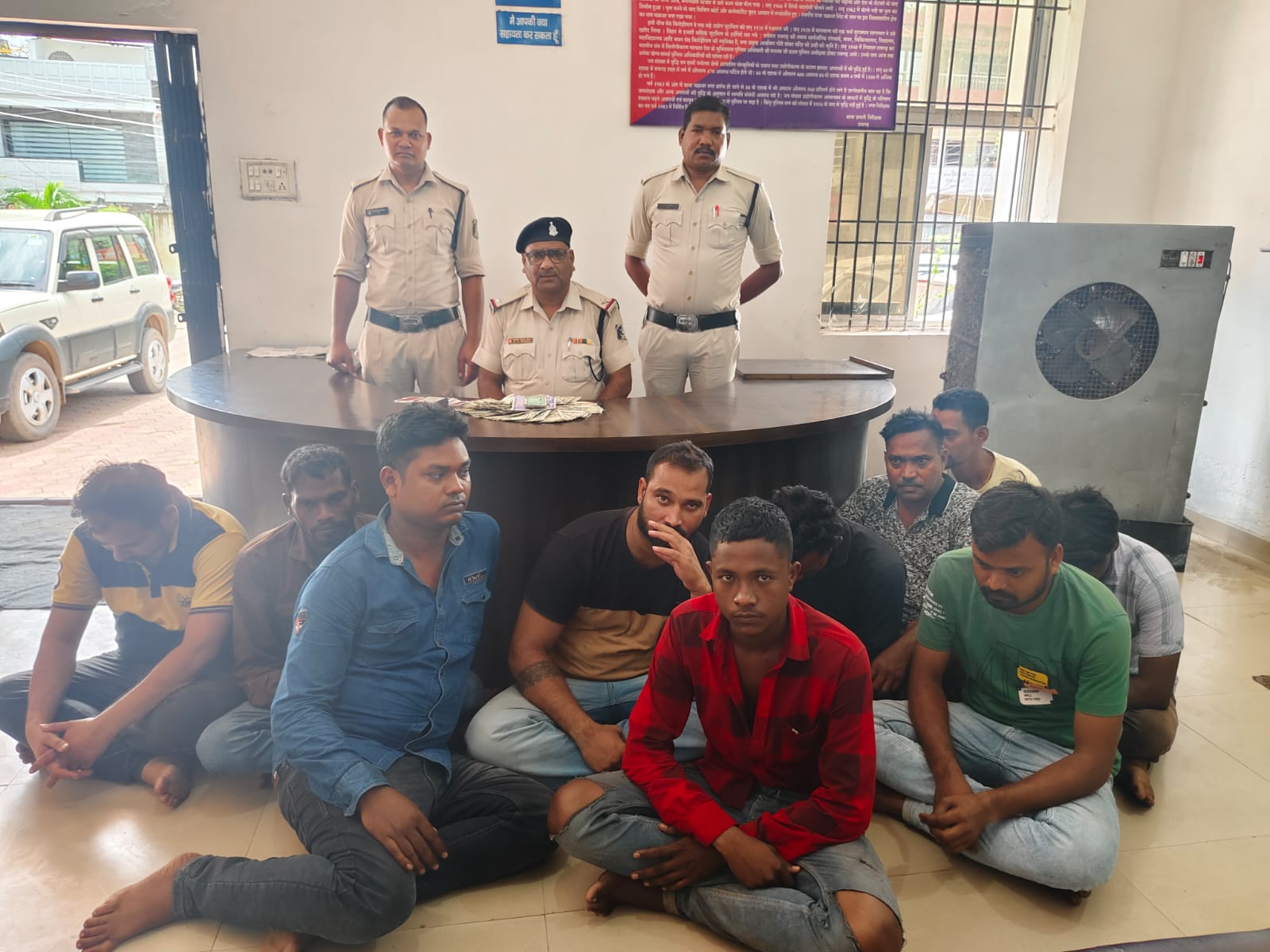 *01 सितंबर, रायगढ़* । बीती रात गस्त दौरान कोतवाली थाना प्रभारी निरीक्षक सुखनंदन पटेल के नेतृत्व में कोतवाली पुलिस ने मुखबिर की सूचना पर प्यासा मैदान, आशीर्वादपुरम कॉलोनी में बिजली के खंभे के नीचे जुआ खेल रहे 10 व्यक्तियों को घेराबंदी कर गिरफ्तार किया गया ।