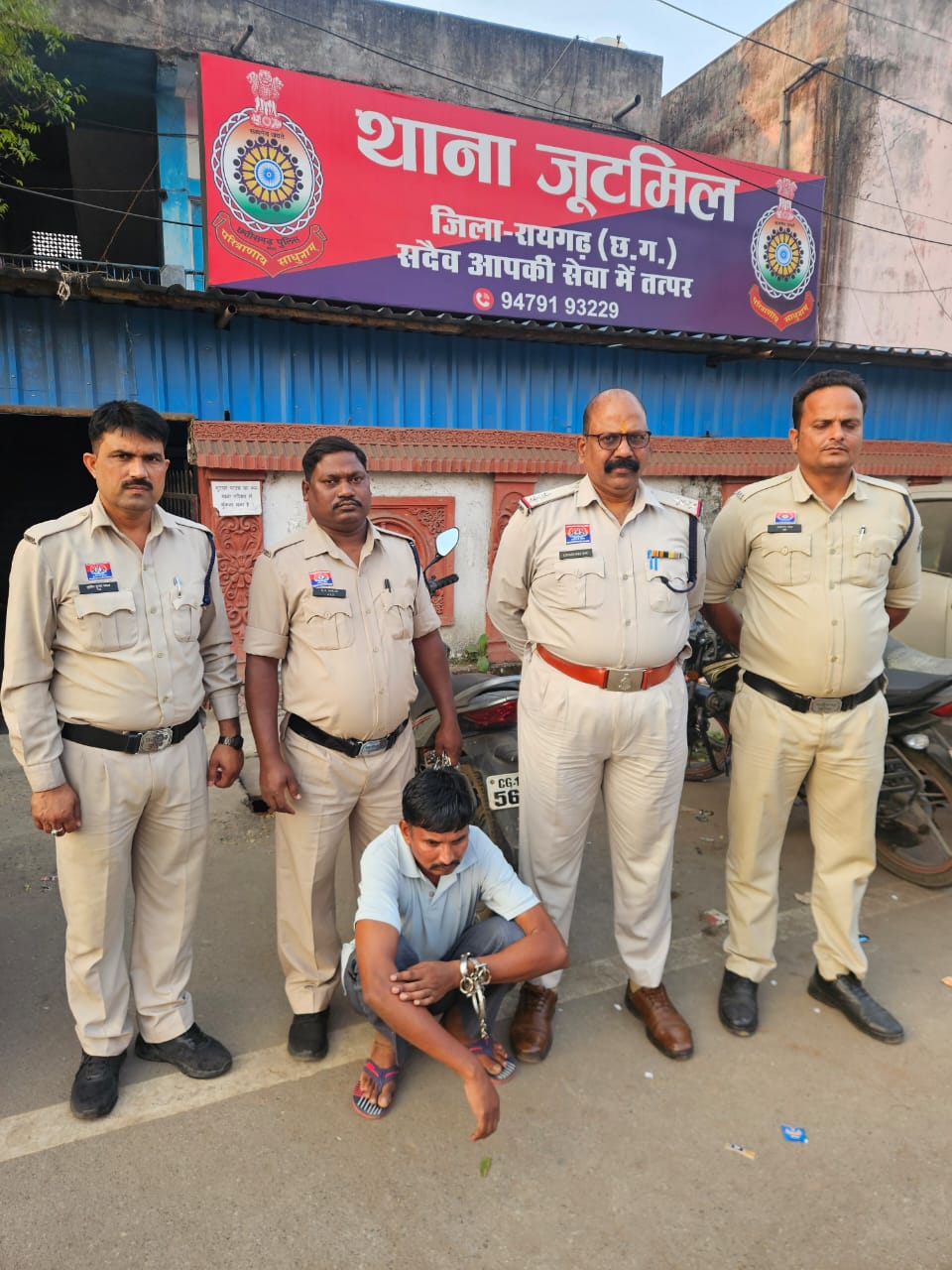 *रायगढ़, 12 नवंबर* । जूटमिल थाना क्षेत्र के चर्चित राधिका रेसिडेंसी चोरी कांड का एक आरोपी पुलिस की गिरफ्त में आ गया है। पुलिस ने आरोपी को ओडिशा के जिला झारसुगुडा जेल से लाकर घटनास्थल पर घटना का रिक्रिएशन कराया, जहां उसने वारदात को अंजाम देने की बात कबूल की। मामले में उसके तीन साथी अब भी फरार हैं, जिनकी तलाश जारी है।