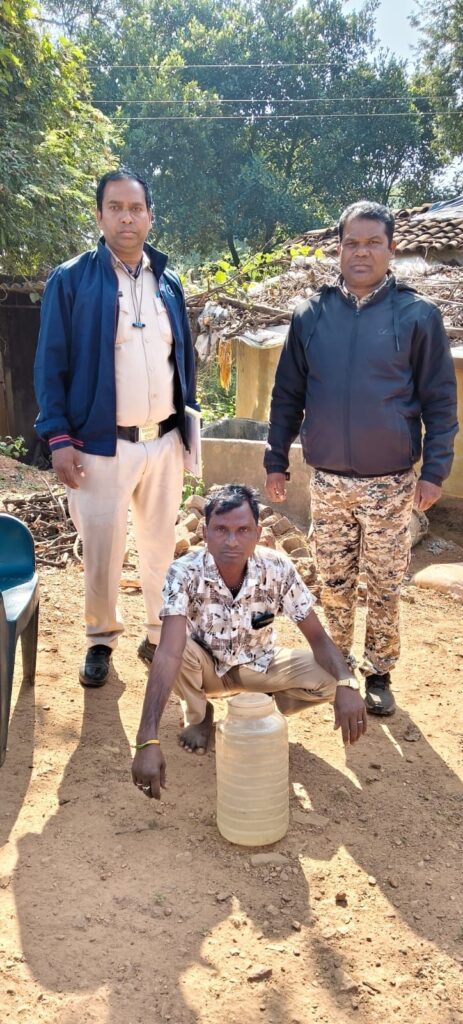 अवैध शराब कारोबार पर प्रहार — ग्राम बनेकेला में आरोपी गिरफ्तार, 7 लीटर कच्ची महुआ शराब जब्त ग्राम बनेकेला में अवैध शराब बिक्री की सूचना पर पुलिस ने रेड कर आरोपी गुरूसिंह सारथी (50 वर्ष) को पकड़ा। उसके कब्जे से 7 लीटर हाथ भट्ठी तैयार कच्ची महुआ शराब जब्त की गई। आरोपी पर आबकारी एक्ट की धारा 34(2) एवं 59(क) के तहत अपराध दर्ज किया गया है।