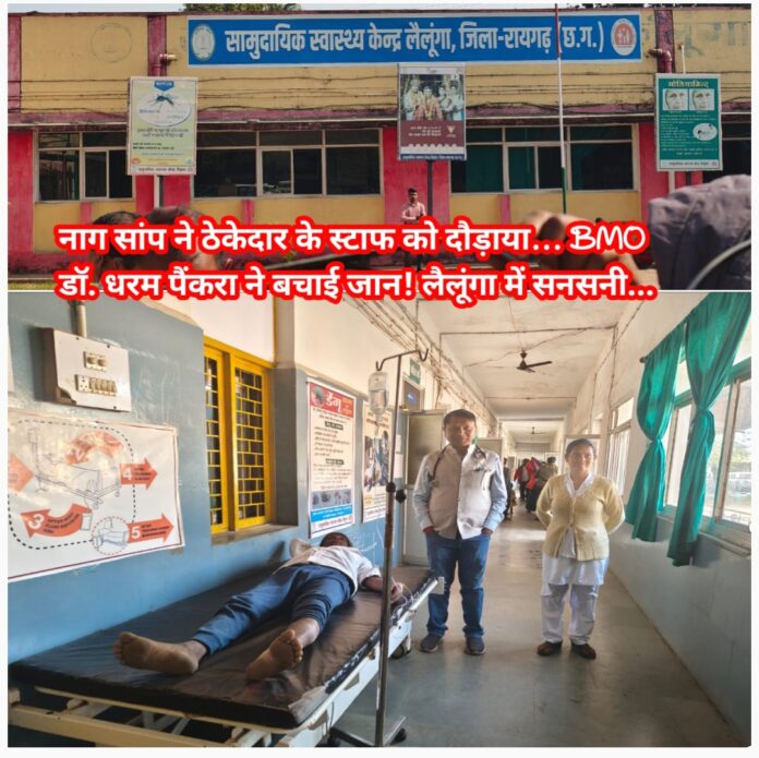 नाग सांप ने ठेकेदार के स्टाफ को दौड़ाया… BMO डॉ. धरम पैंकरा ने बचाई जान! लैलूंगा में सनसनी….