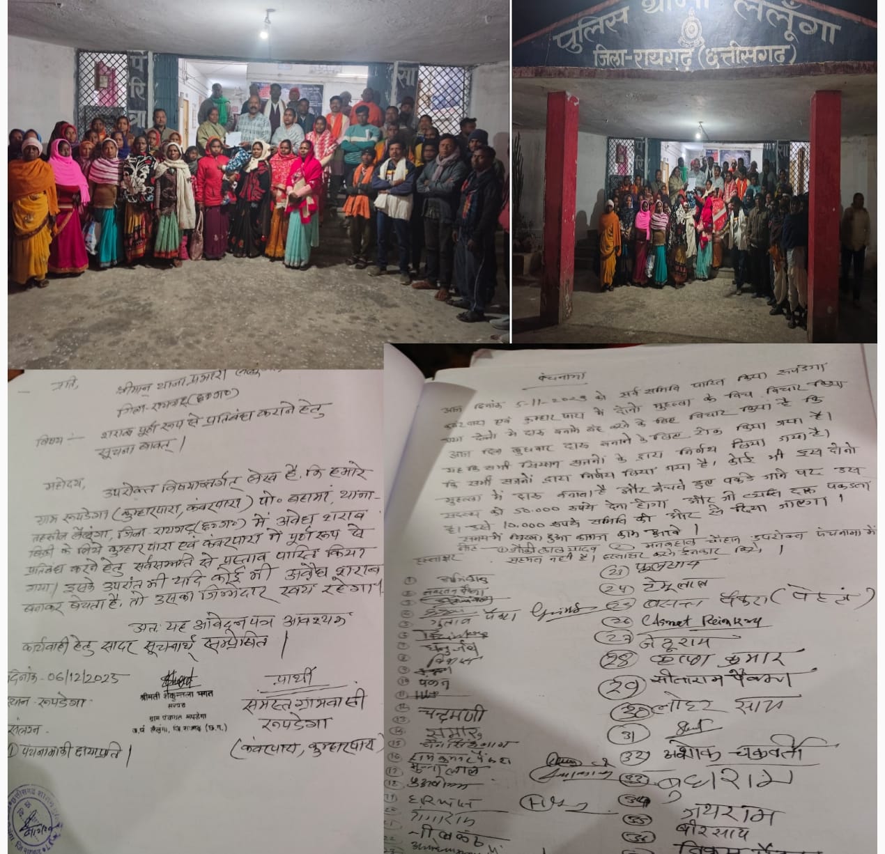 रूपडेगा, बहामा (लैलूंगा) ग्राम रूपडेगा के कुम्हारपारा एवं कंवरपारा में अवैध शराब पर कड़ी रोक लगाने ग्रमीणों और महिलाओं ने ऐतिहासिक और ताबड़तोड़ फैसला लिया है। गांव के वरिष्ठजन, समिति सदस्य और ग्रामीणों की सर्वसम्मति से दिनांक 5-12-2025 को बड़ी बैठक आयोजित की गई, जिसमें दोनों मोहल्लों—कुम्हारपारा और कंवरपारा—में पूरी तरह शराब निर्माण और बिक्री पर प्रतिबंध लगाने का प्रस्ताव धड़ाधड़ पारित किया गया।