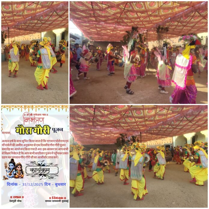 सुबह से ही श्रद्धालुओं का तांता लगा रहा। महिलाएं परंपरागत वेशभूषा में सज–धज कर सिर पर गौरा–गौरी प्रतिमाएं लेकर पूजा स्थल पहुंचीं। विधिवत पूजा, विभिन्न धार्मिक अनुष्ठान और सामूहिक आरती के बीच पूरा वातावरण श्रद्धा से भर गया। जैसे ही पूजा की समाप्ति हुई, गांव में सांस्कृतिक माहौल और भी जीवंत हो उठा।