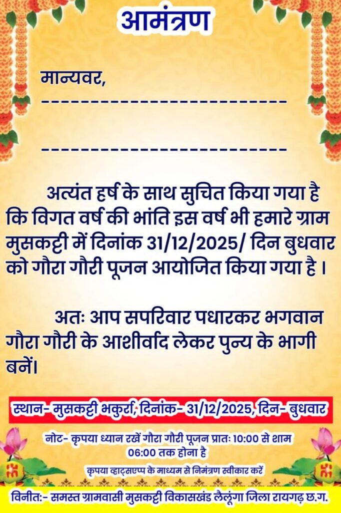 कुल मिलाकर कहा जाए तो मुसकट्टी में आयोजित गौरा–गौरी पूजा इस बार सिर्फ एक धार्मिक आयोजन नहीं रही, बल्कि आस्था, संस्कृति और सामाजिक एकता का भव्य महोत्सव बन गई। गांव में देर रात तक उत्सव का माहौल बना रहा, ढोल-मांदर की थाप गूंजती रही और लोग यही कहते सुने गए—