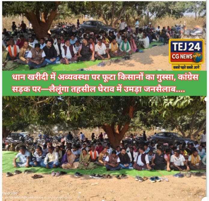धान खरीदी में अव्यवस्था पर फूटा किसानों का गुस्सा, कांग्रेस सड़क पर—लैलूंगा तहसील घेराव में उमड़ा जनसैलाब….