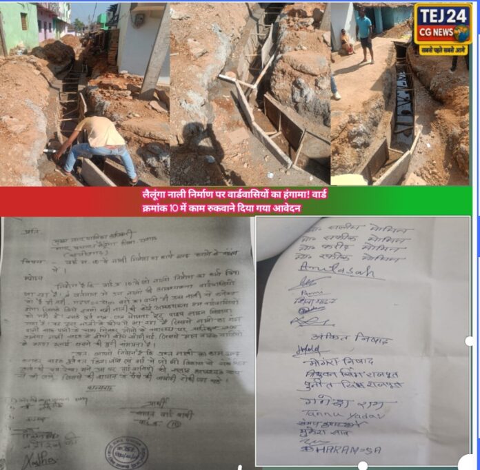 लैलूंगा नाली निर्माण पर वार्डवासियों का हंगामा! वार्ड क्रमांक 10 में काम रुकवाने दिया गया आवेदन