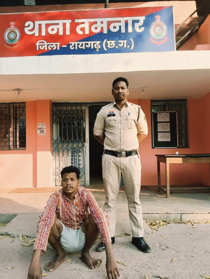 आरोपी को गिरफ्तार कर कल न्यायिक रिमांड पर भेज दिया गया है। मामले में आरोपी की गिरफ्तारी में थाना प्रभारी तमनार निरीक्षक प्रशांत राव के हमराह एएसआई शशिदेव भोय, प्रधान आरक्षक देव राठिया. विपिन पटेल का विशेष योगदान रहा ।