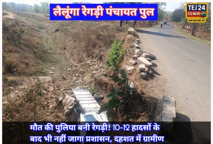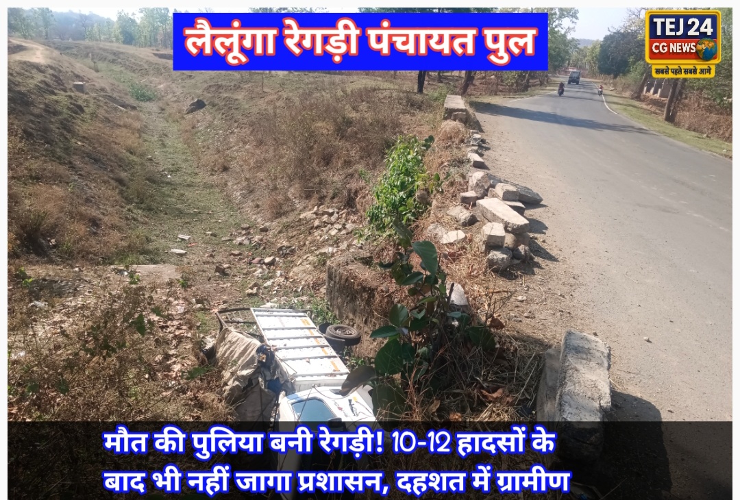 लैलूंगा क्षेत्र के रेगड़ी पंचायत में बनी एक पुलिया अब लोगों के लिए सुविधा नहीं बल्कि मौत का जाल बनती जा रही है। संकरी और जर्जर हालत में मौजूद यह पुलिया आए दिन सड़क दुर्घटनाओं का कारण बन रही है। ग्रामीणों का आरोप है कि अब तक इस पुलिया पर 10 से 12 से अधिक दुर्घटनाएँ हो चुकी हैं, जिनमें कई लोगों की मौत तक हो चुकी है, लेकिन इसके बावजूद जिम्मेदार विभाग और प्रशासन अब तक गहरी नींद में सोया हुआ है।