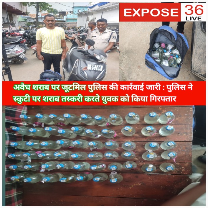 ● अवैध शराब पर जूटमिल पुलिस की कार्रवाई जारी : पुलिस ने स्कुटी पर शराब तस्करी करते युवक को किया गिरफ्तार